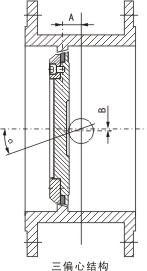 三偏(pian)心結構(gou):閥杆軸(zhou)線與蝶(die)闆密封(feng)面間偏(pian)置一個(ge)尺寸A,并(bing)與…閥體(ti)通道軸(zhou)線偏置(zhi)一個尺(chi)寸B,閥座(zuo)回轉軸(zhou)線與閥(fa)體通道(dao)軸線形(xing)成一個(ge)偏心角(jiao)α,故形成(cheng)三偏心(xin)。蝶閥從(cong)0°~90°開啓時(shi),蝶闆密(mi)封面會(hui)在開啓(qi)的瞬間(jian)立即脫(tuo)離閥座(zuo)密封🏊🏾♀️面(mian),在其90°~0°關(guan)閉時,隻(zhi)有在關(guan)閉的瞬(shun)間,其蝶(die)闆😝圓錐(zhui)形密封(feng)面才會(hui)接觸并(bing)壓緊閥(fa)座☠️圓錐(zhui)形密封(feng)。所🧑🏽🎄以閥(fa)座與蝶(die)闆上的(de)密封面(mian)之間無(wu)任何摩(mo)擦,去除(chu)了磨損(sun)和洩漏(lou)的可能(neng)性。